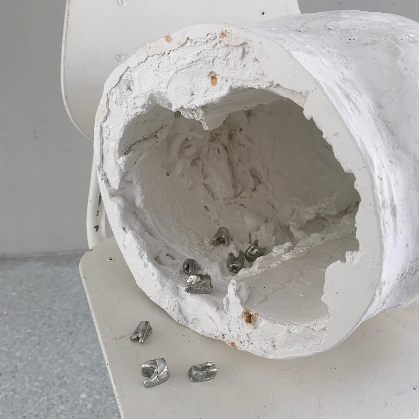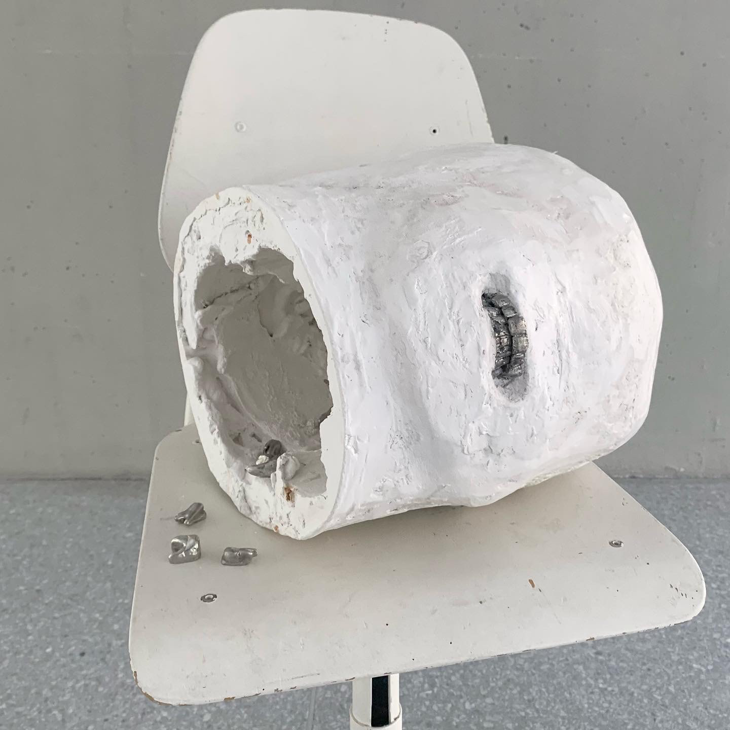 Untitled, height: 73cm, plaster and cast tin on found childrenās chair, 2024