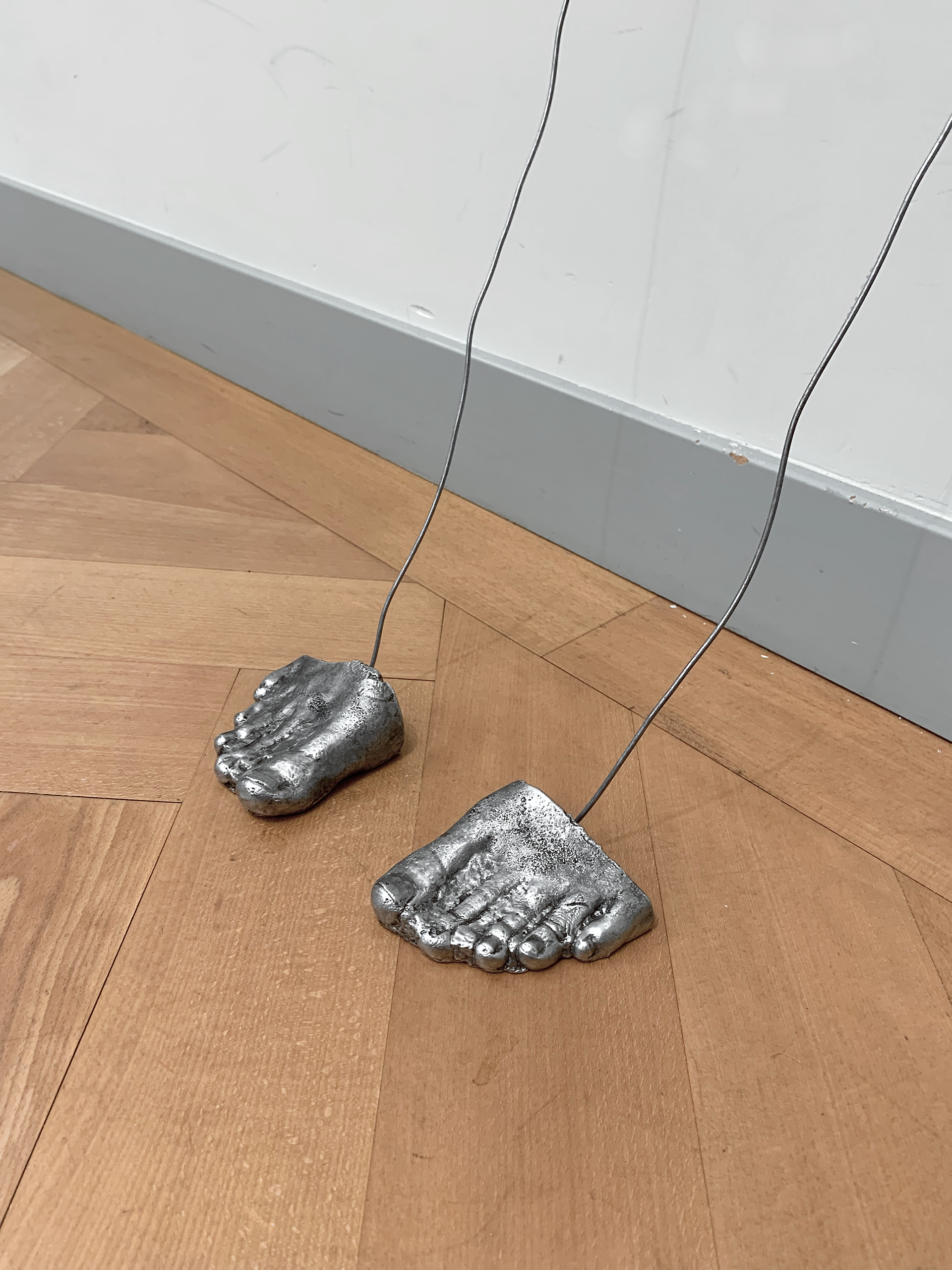 Untitled (Leaning Figure), height: 160cm, cast tin, steel wire, 2024