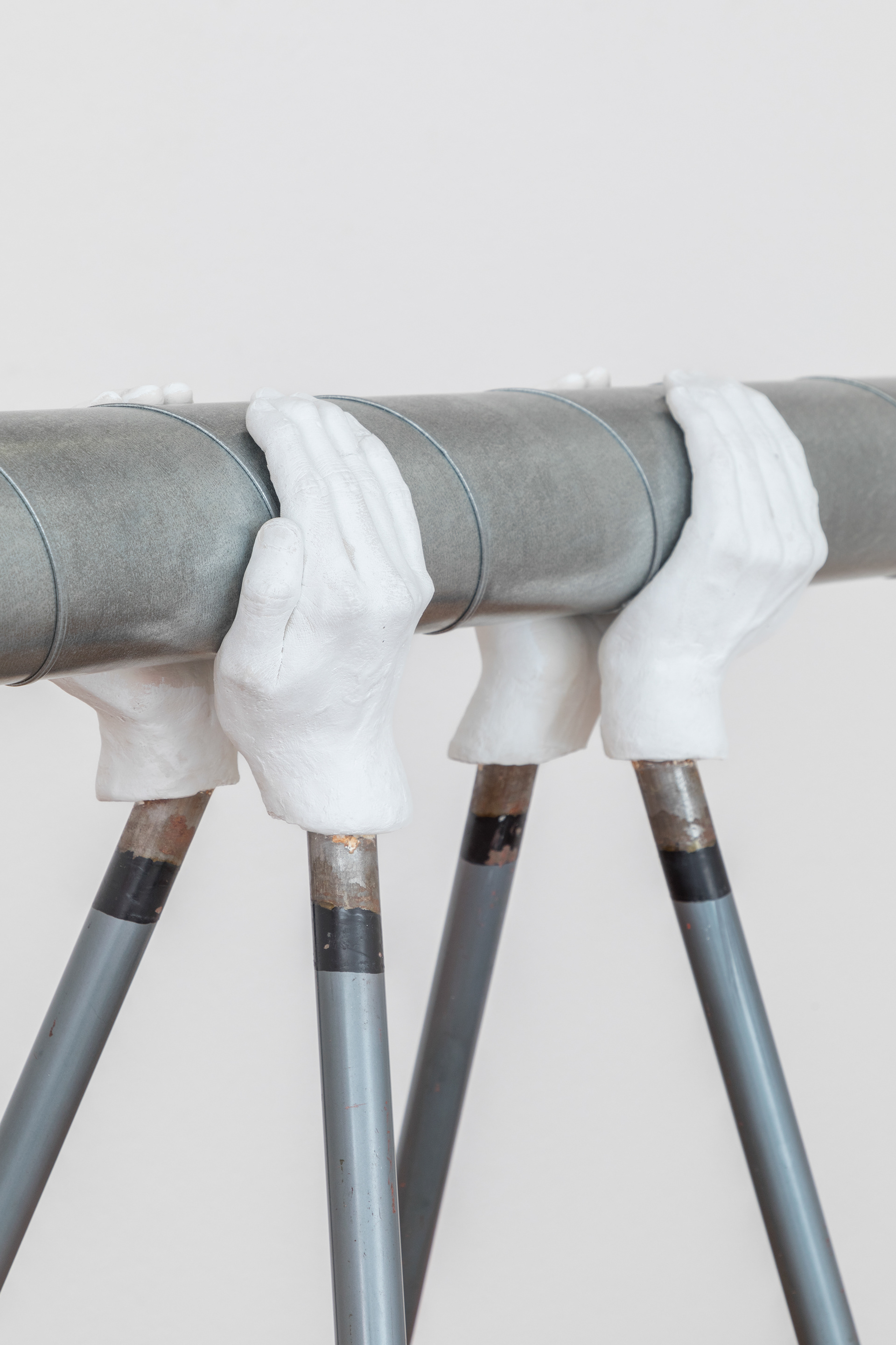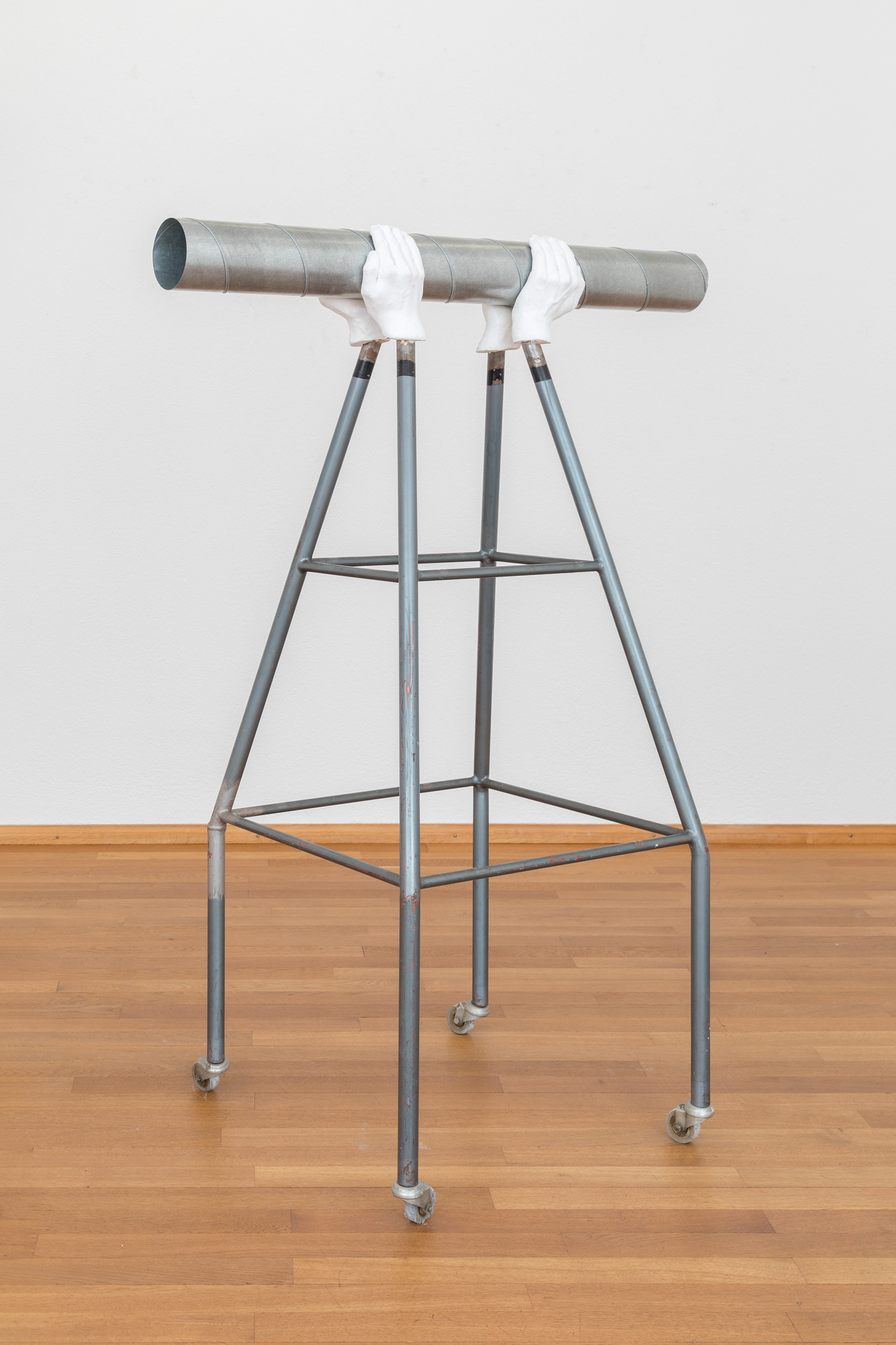 Untitled (Mouthpiece), 100cm x 60cm x 140cm, plaster, steel, 2024