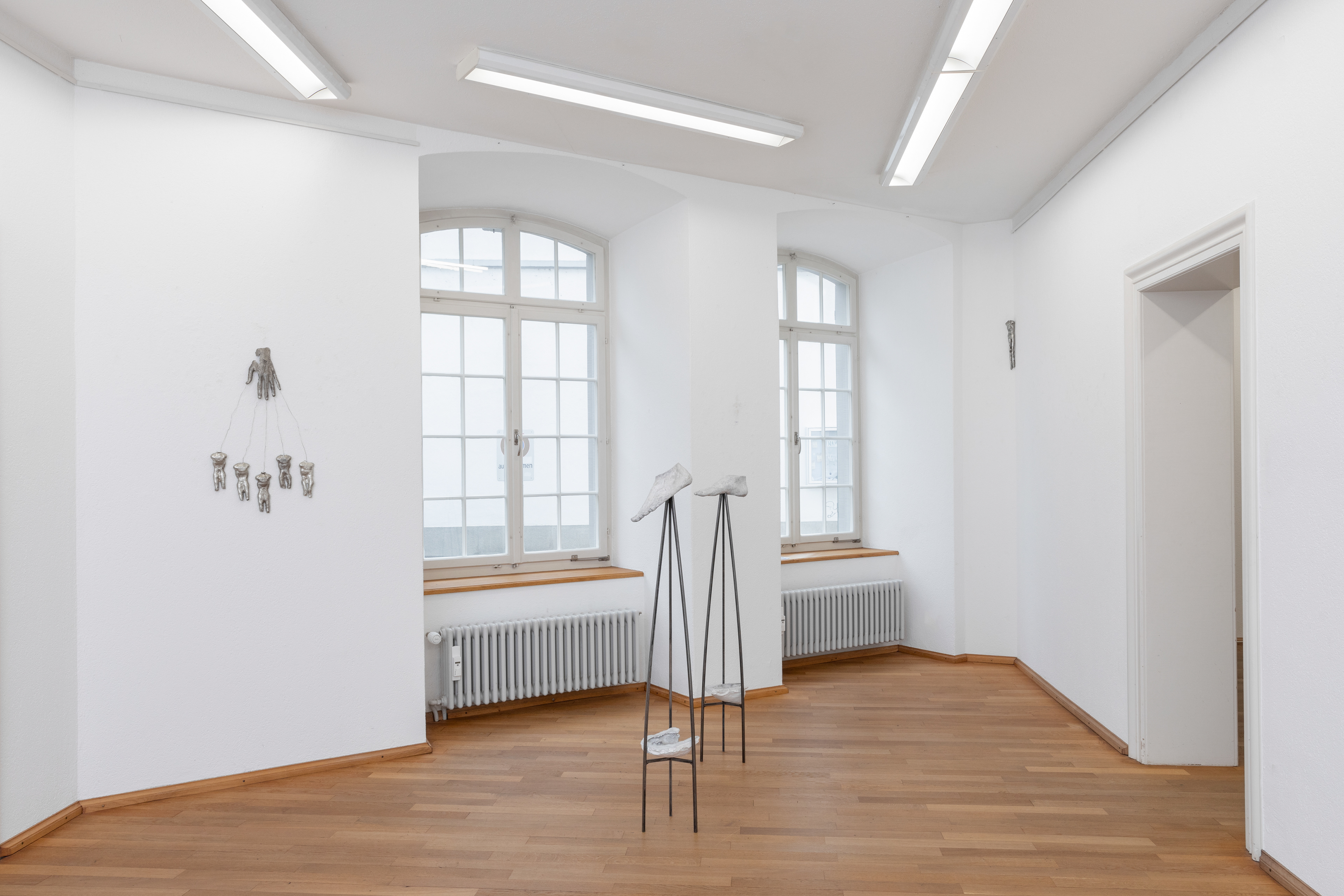 Untitled (Traces), height: 130cm each, plaster, pigments, steel, 2024
